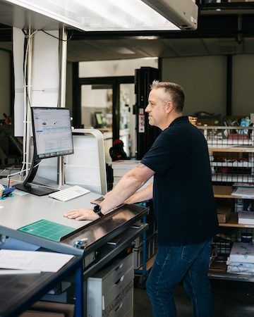 Denn nur so siehst und fühlst du das Endprodukt, bevor es in Serie geht. So kannst du sicher sein, dass deine Farben exakt so aussehen, wie du es dir vorstellst, und wir können beruhigt auf den Startknopf drücken.